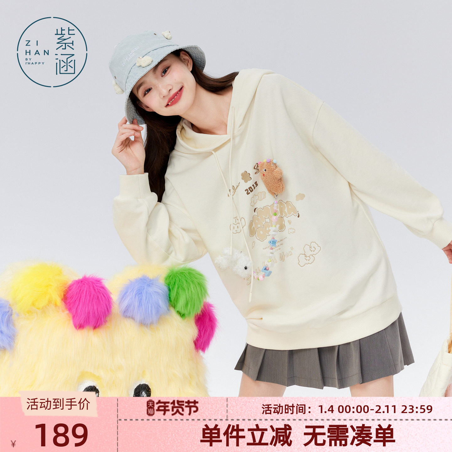 - 卡通连帽卫衣女