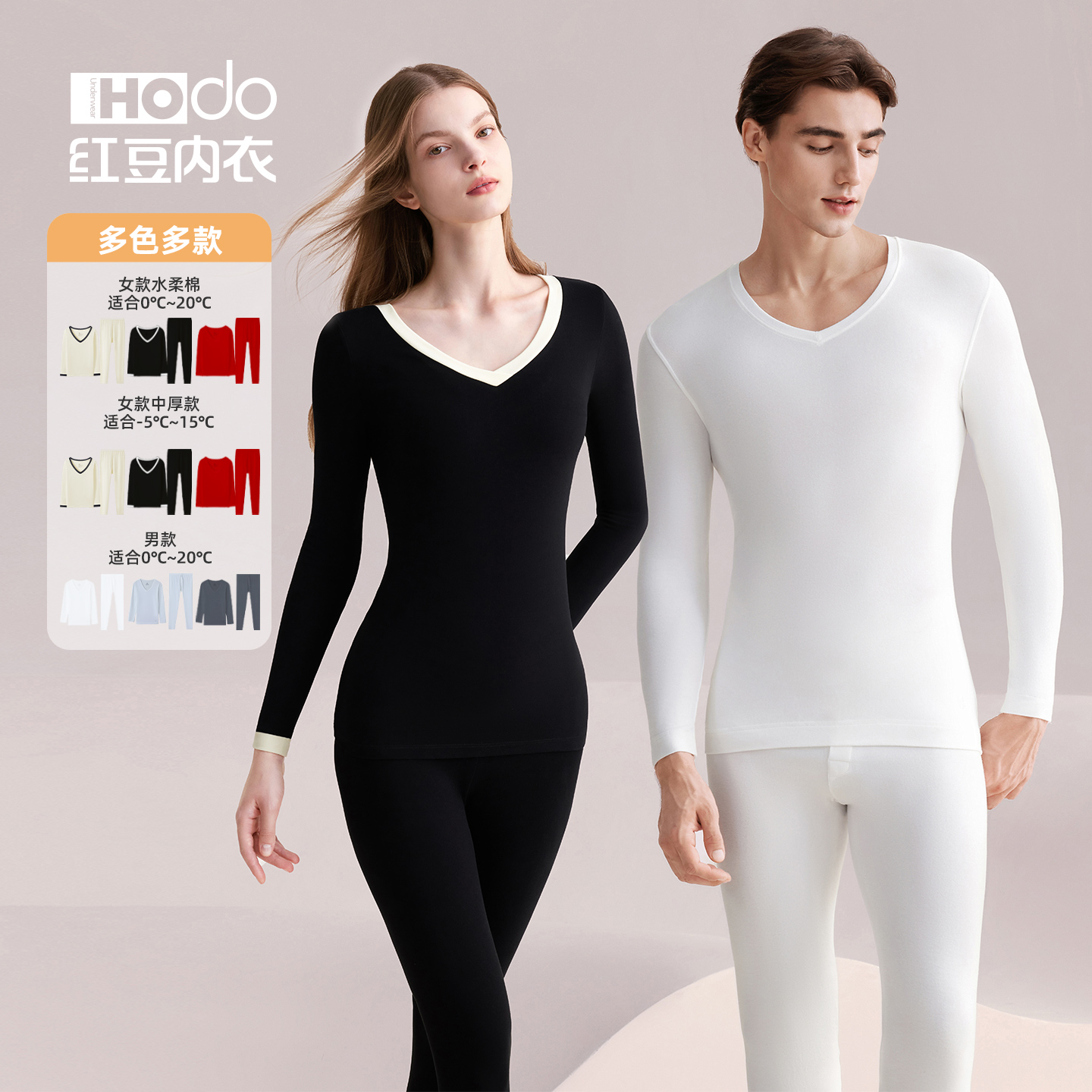 红豆轻薄青年秋衣秋裤男女德绒抗静电情侣冬打底内衣修身保暖套装