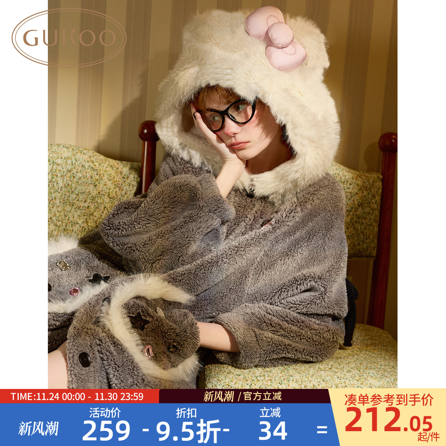 Gukoo/果壳新款睡衣女冬季HelloKitty联名可爱睡袍家居服珊瑚绒D