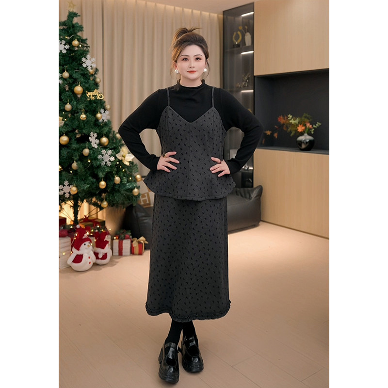 【胖佳佳】胖妹妹mm大码女装温暖底牌套装 加绒打底衫刺绣半身裙