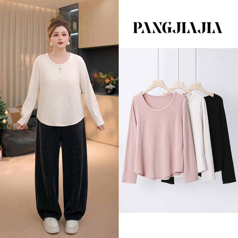 胖妹妹mm长袖T恤棉大码女装200斤加绒宽松显瘦春秋内搭上衣打底衫