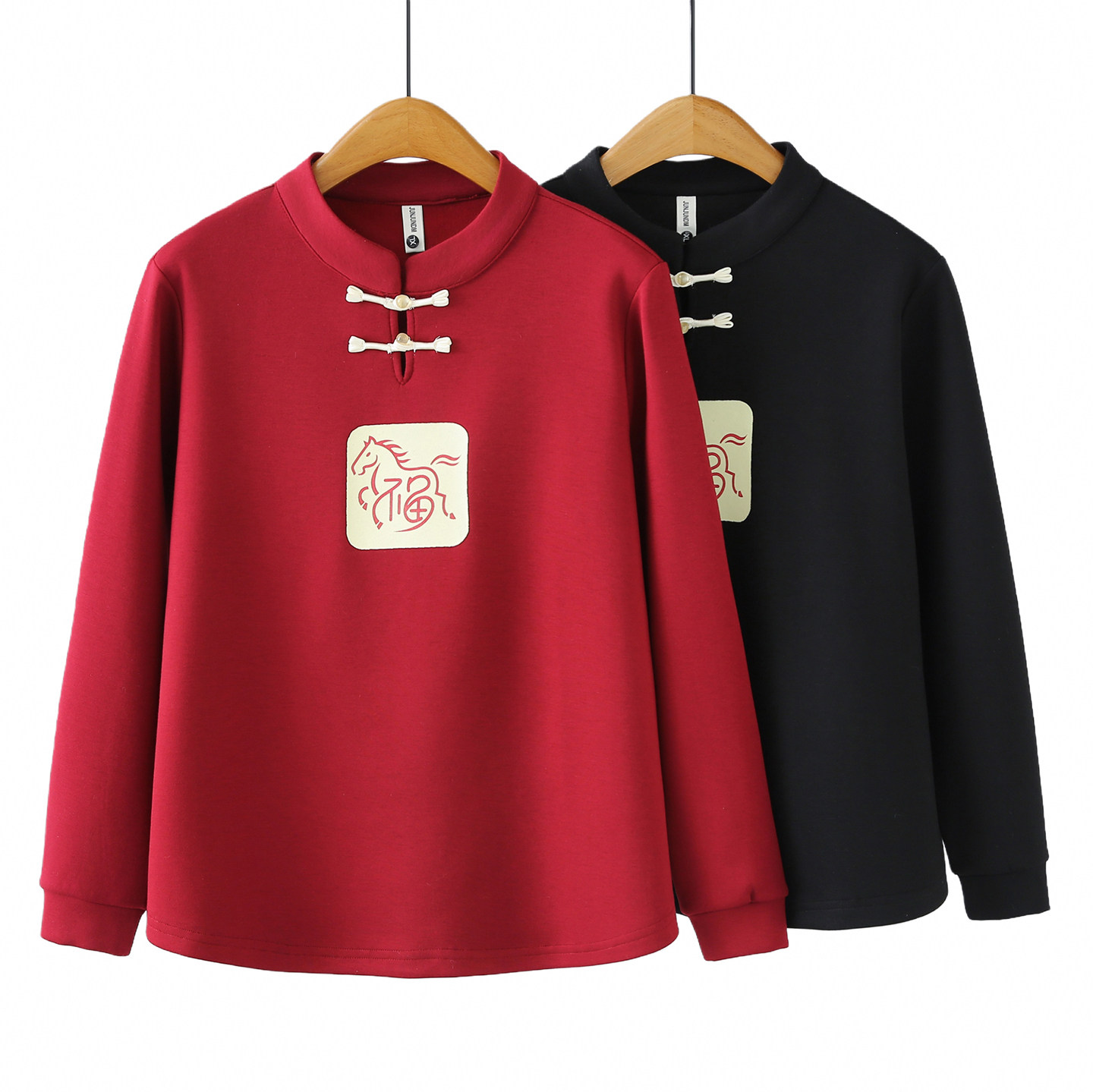 大码加绒卫衣女200斤正肩秋冬2025新款胖妹妹国风盘扣立领打底衫