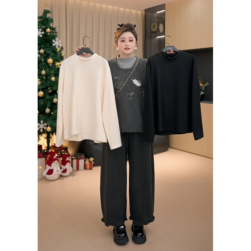 【胖佳佳】胖妹妹mm大码女装万金油 加绒加厚高领打底衫冬季上衣