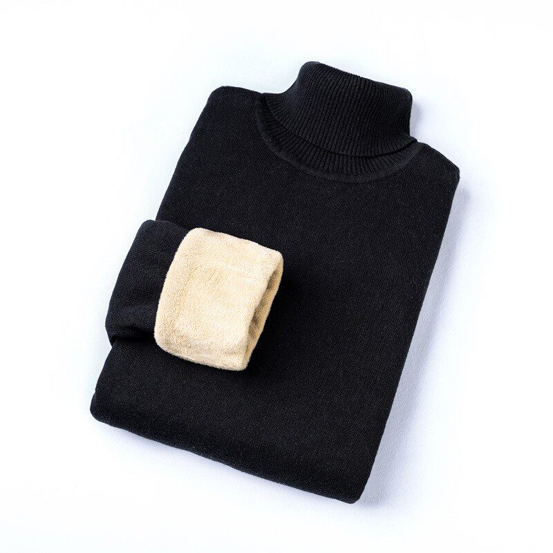 纯棉线毛衣高领长袖内搭针织打底衫胖妹妹大码女黑色冬男加绒加厚