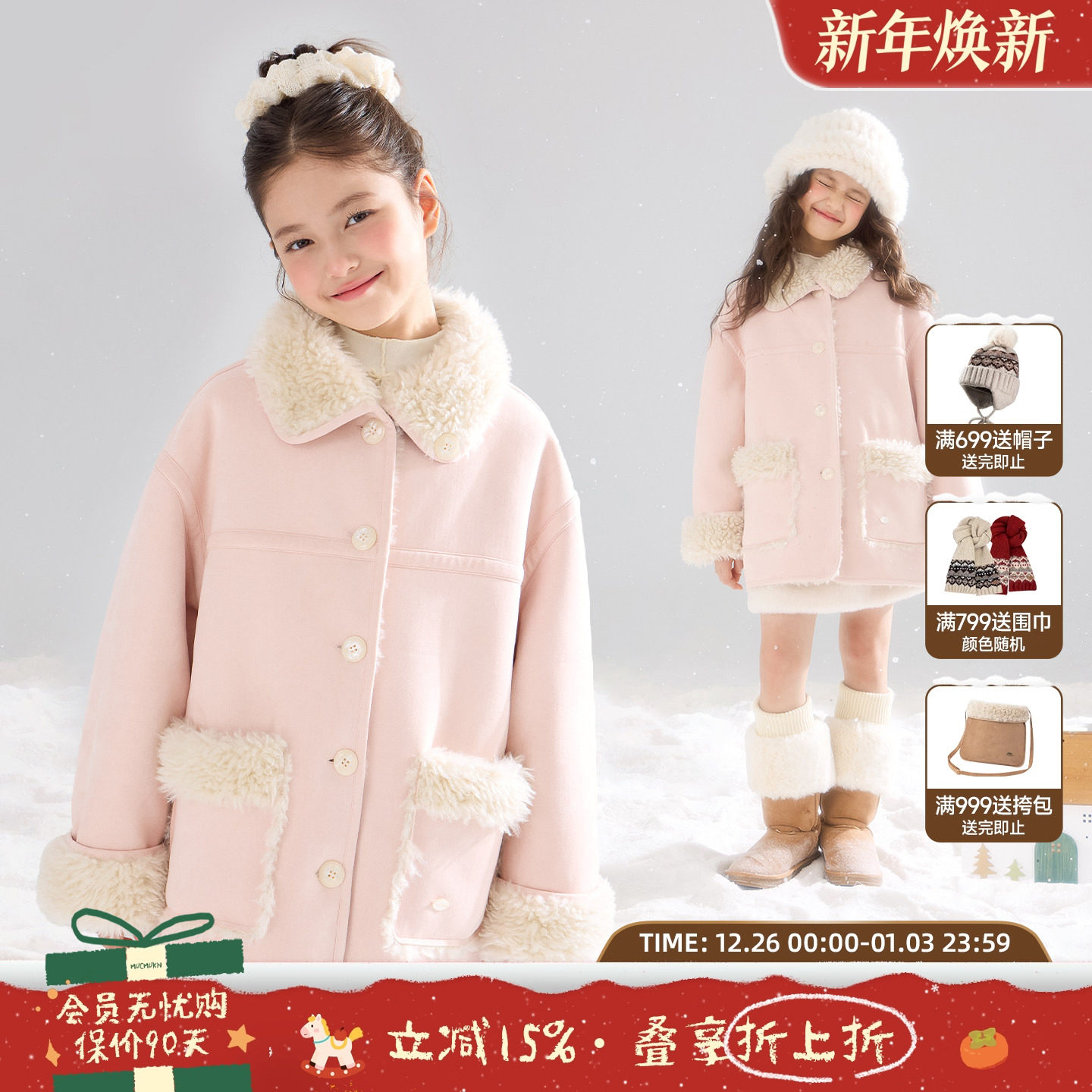 MUCMUKN【北欧粉雪】双面穿麂皮毛绒大衣厚实保暖外套女童冬新款