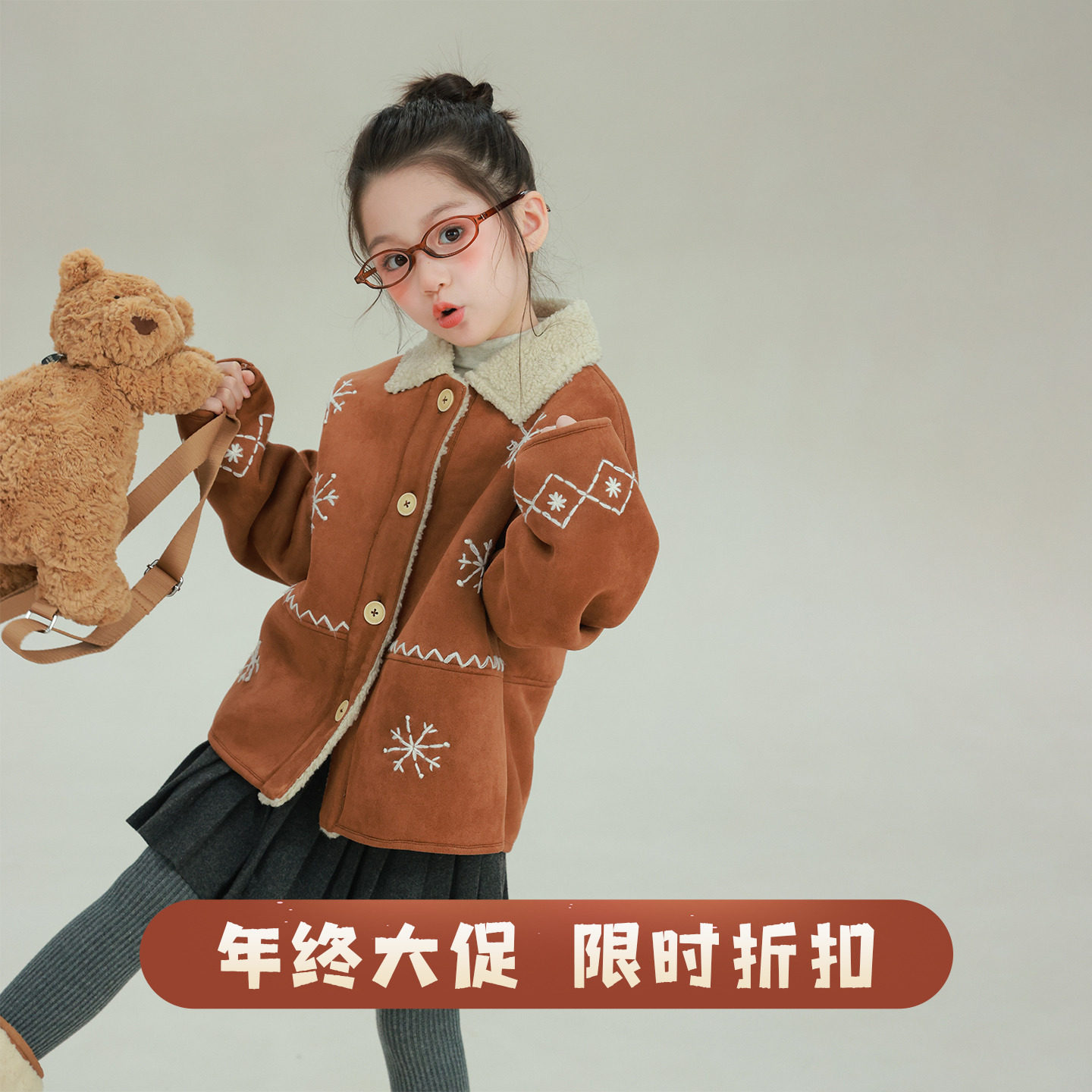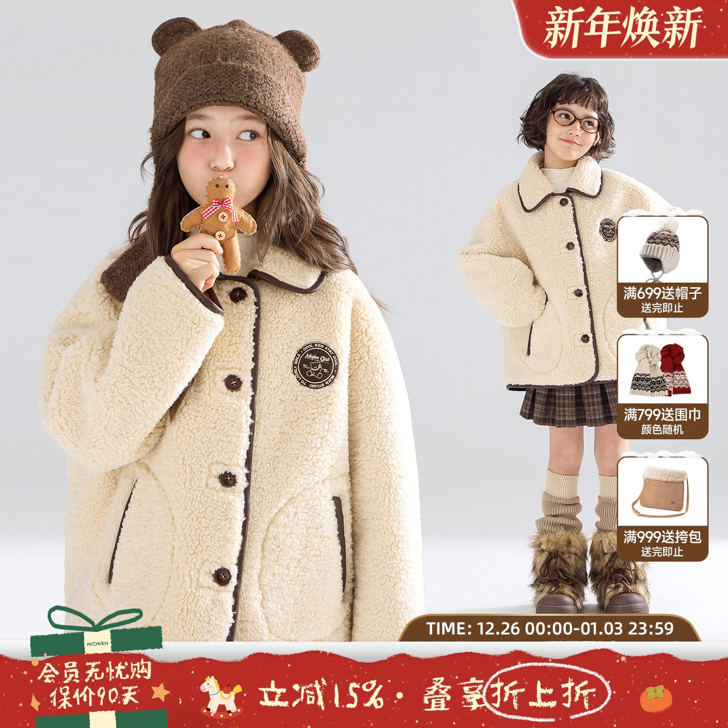 MUCMUKN【小熊学院】复古学院风毛绒外套麂皮一体绒保暖女童冬新