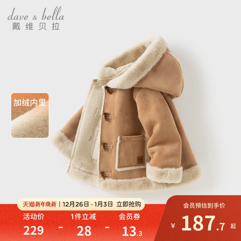 戴维贝拉女童麂皮绒加厚外套儿童加绒夹克2025新款秋冬装女孩童装