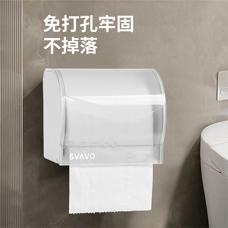 卫生间纸巾盒壁挂式免打孔防水卫生纸置物盒子家用透明厕所抽纸盒