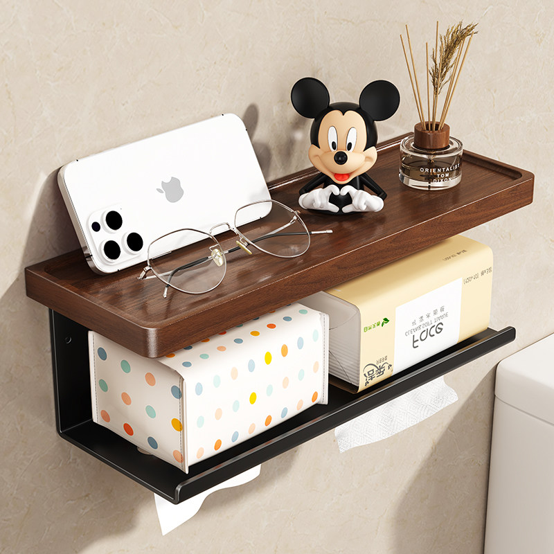 厕所卫生间纸巾盒免打孔卷纸架浴室抽纸盒手机置物架壁挂式厕纸架