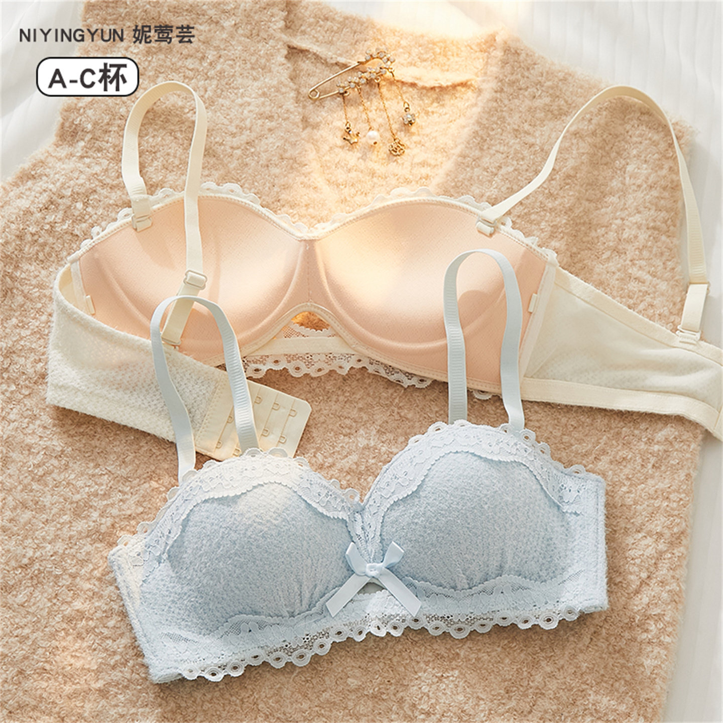 月月露娜 小胸聚拢内衣女加厚性感蕾丝文胸防下垂无钢圈胸罩套装