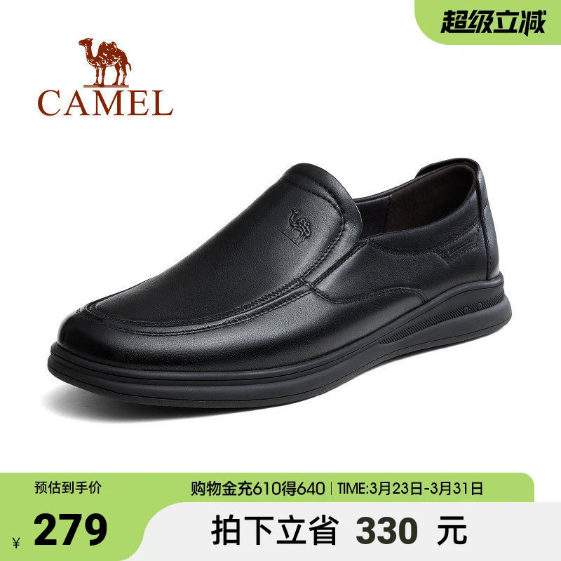 骆驼2026春季舒适休闲软底皮鞋男结婚新郎正装商务真皮增高德比鞋