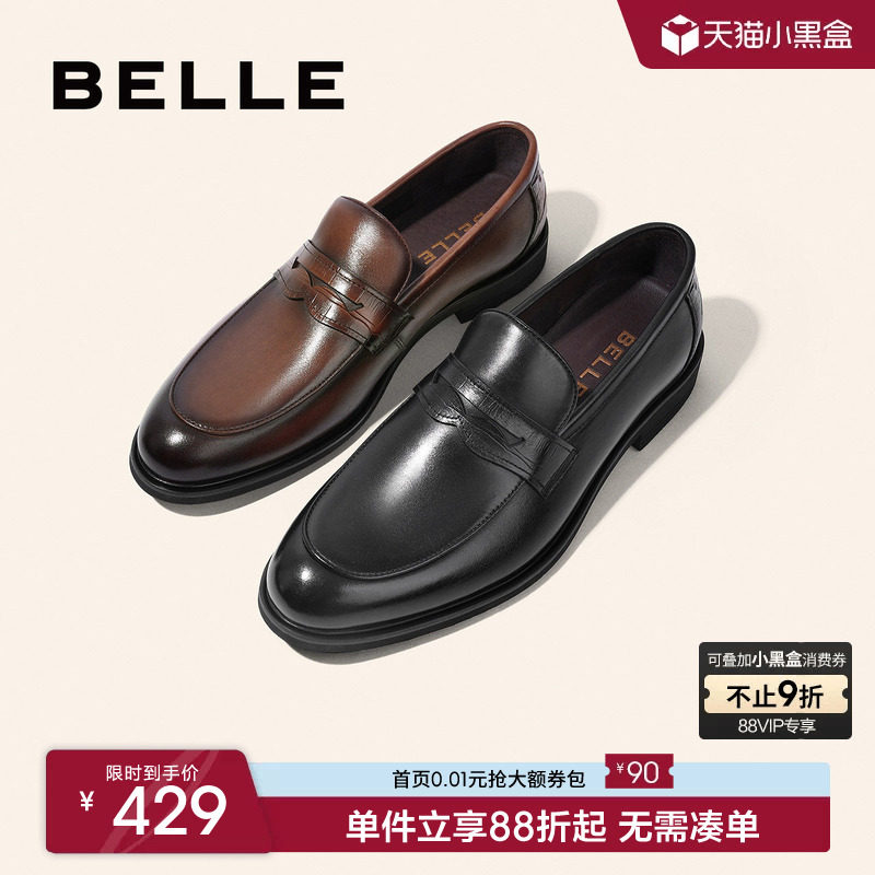 百丽男鞋休闲商务皮鞋男秋季乐福鞋套脚一脚蹬软底爸爸鞋A0632AM2