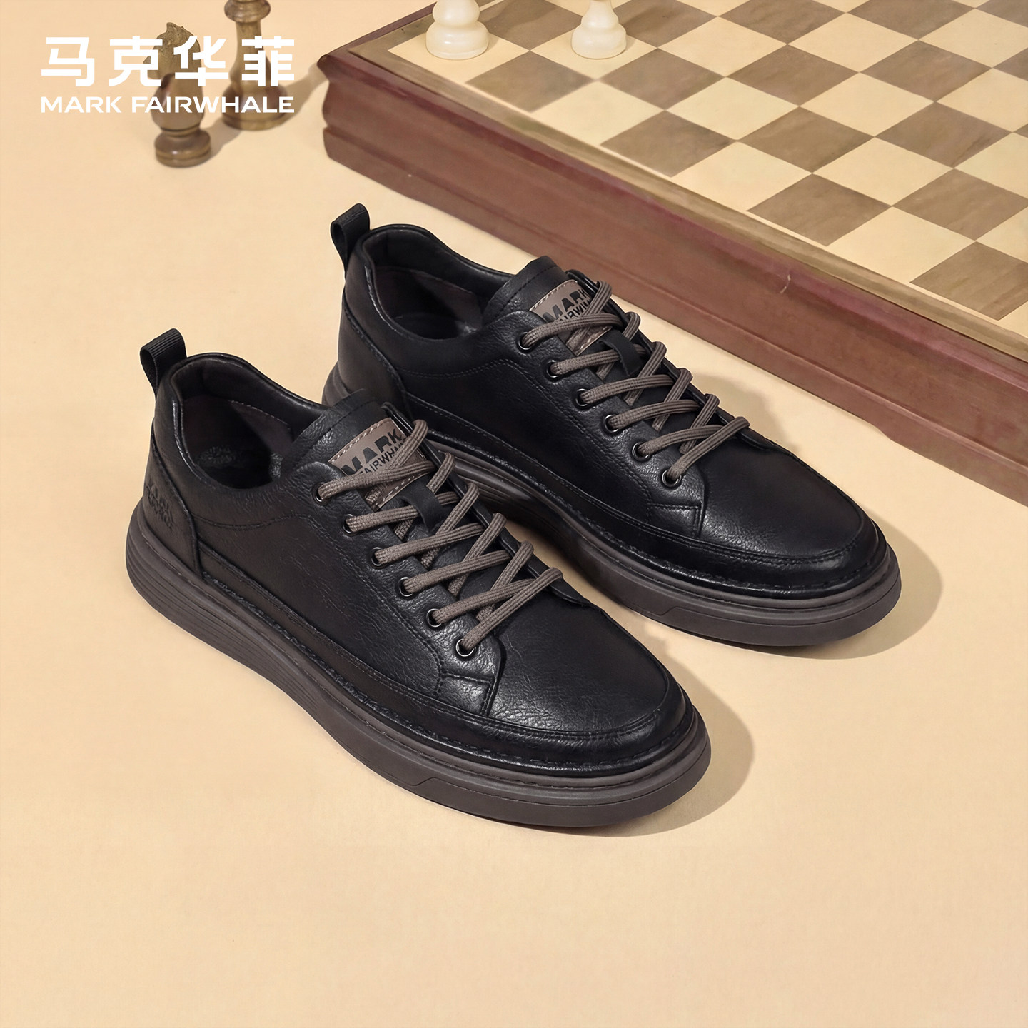 马克华菲男鞋真皮英伦商务皮鞋男2026新款黑色男士休闲鞋真皮板鞋