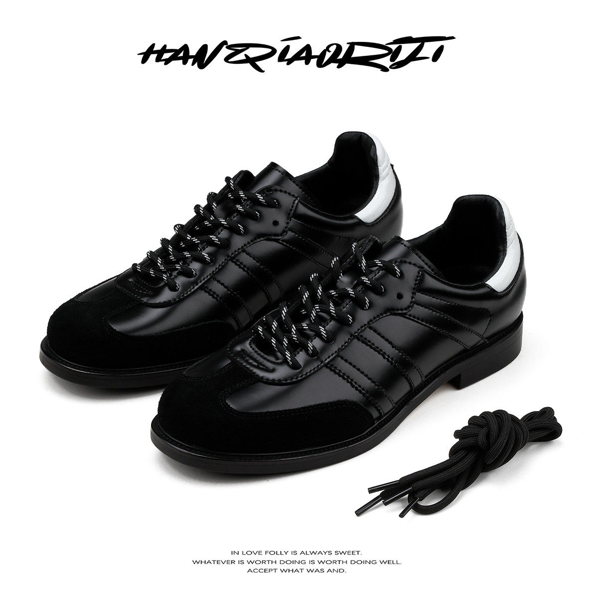 韩桥日记[幽渊系列]"白尾"百搭高级感黑色德训鞋通勤休闲小皮鞋男