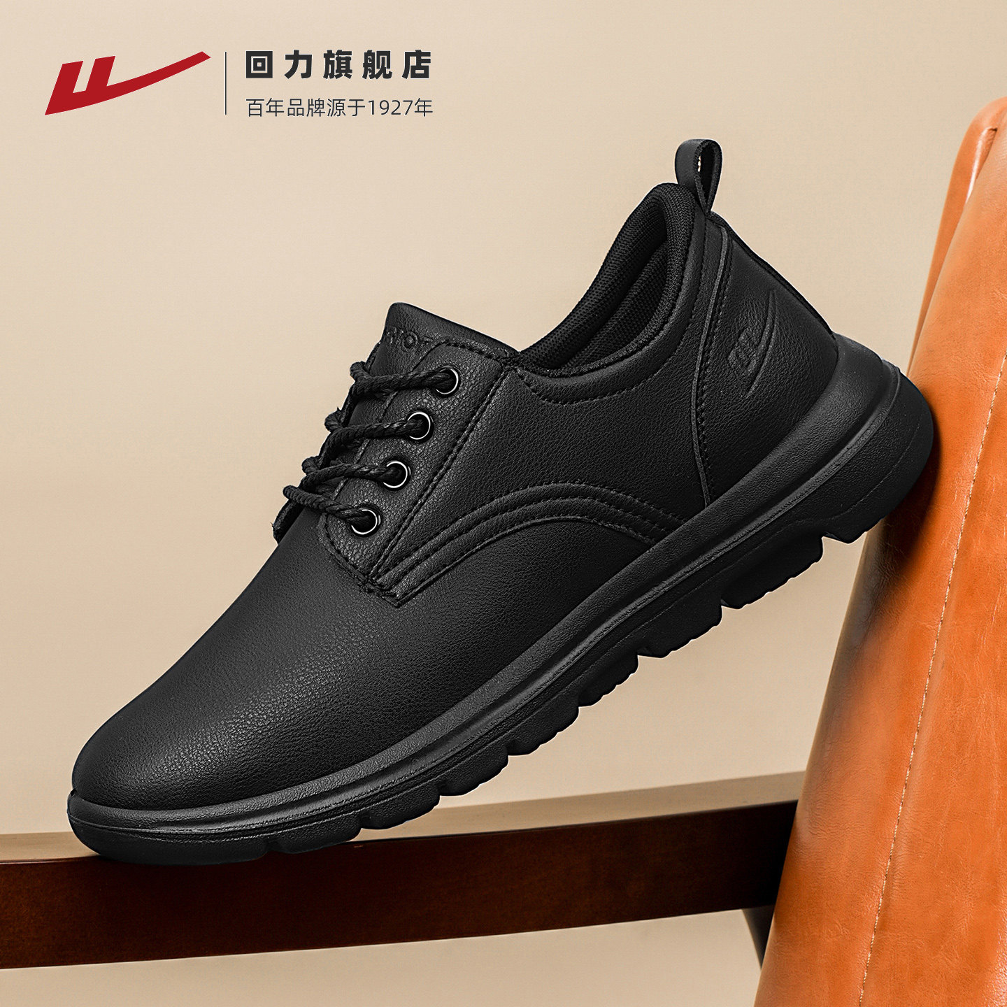 回力休闲皮鞋男款软底运动男士黑色爸爸中年结婚舒适上班商务鞋子