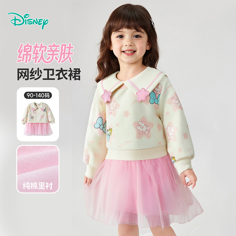 迪士尼童装正品女童春秋长袖卫衣连衣裙2026新款小童宝公主网纱裙