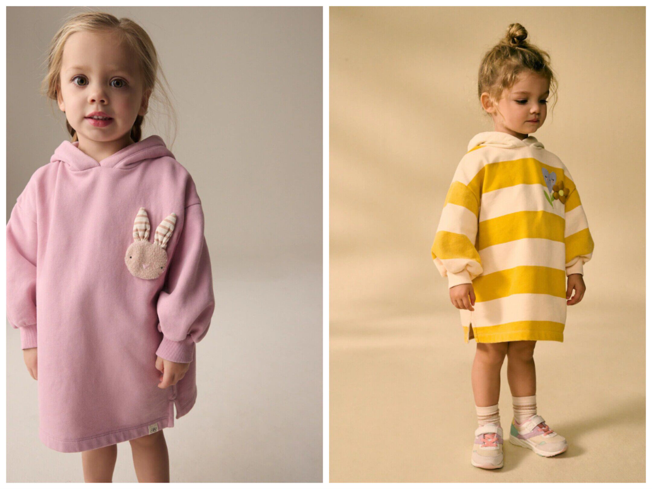 现货英国NEXT童装女童女宝宝粉色卡通兔子连帽长袖卫衣连衣裙子