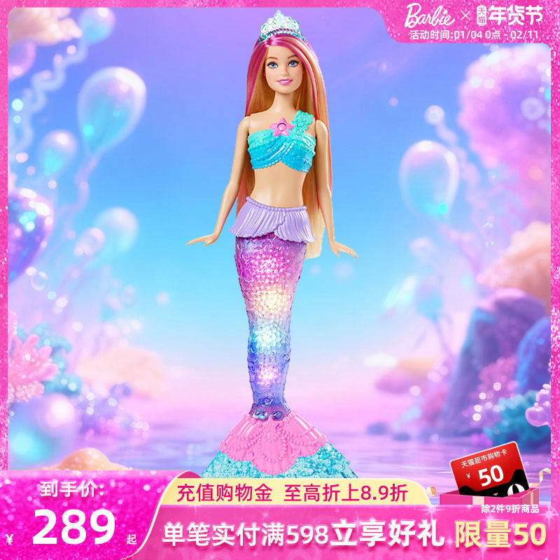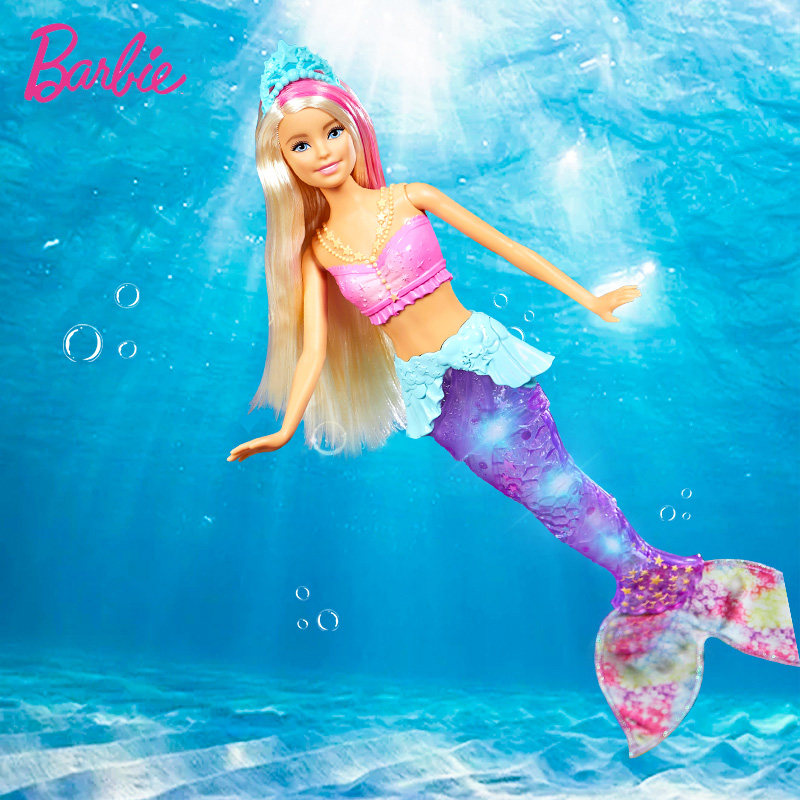 芭比美人鱼娃娃公主玩具可下水衣服带声光电套装HBW90女孩礼物