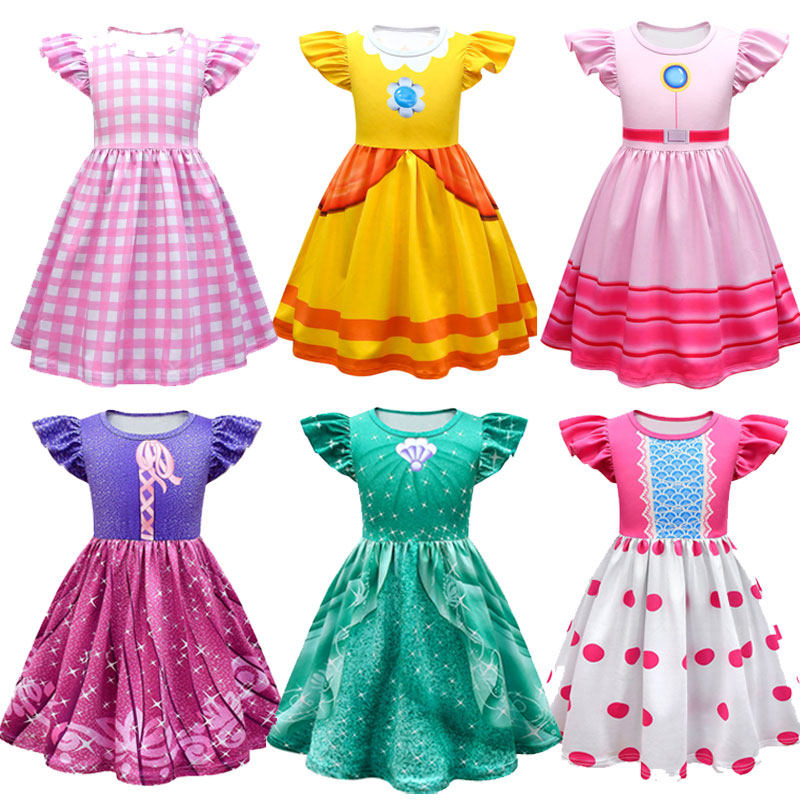 外贸新款女童芭比娃娃碧姬爱莎安娜爱洛美人鱼茉莉长发公主连衣裙