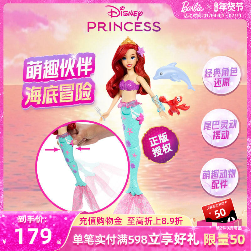 芭比娃娃Barbie迪士尼爱丽儿和姐妹美人鱼公主女孩过家家玩具礼物