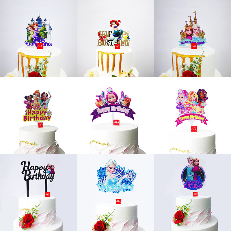公主蛋糕装饰插件 冰雪女王艾莎芭比烘焙插牌 彩印美人鱼甜品插卡