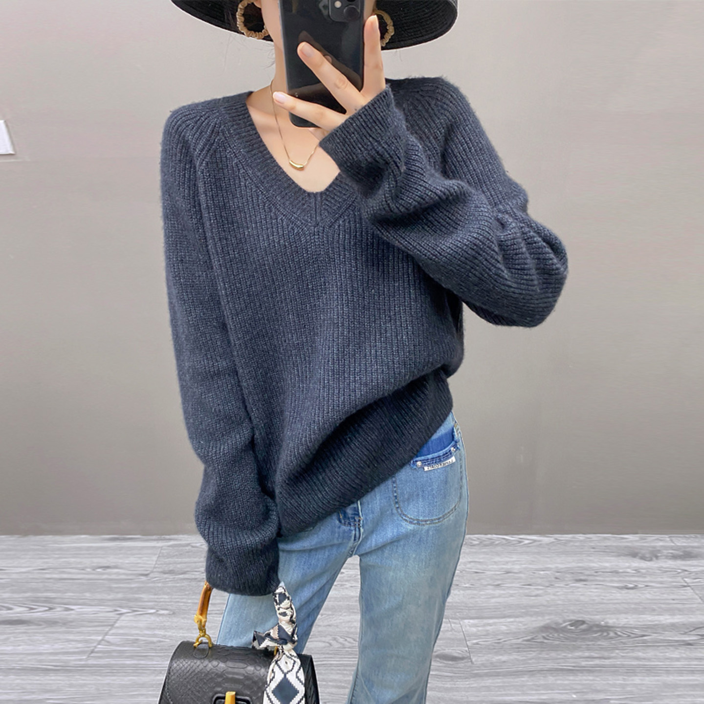 超软糯100纯山羊绒衫女V领宽松针织打底衫慵懒风显瘦羊绒毛衣秋冬