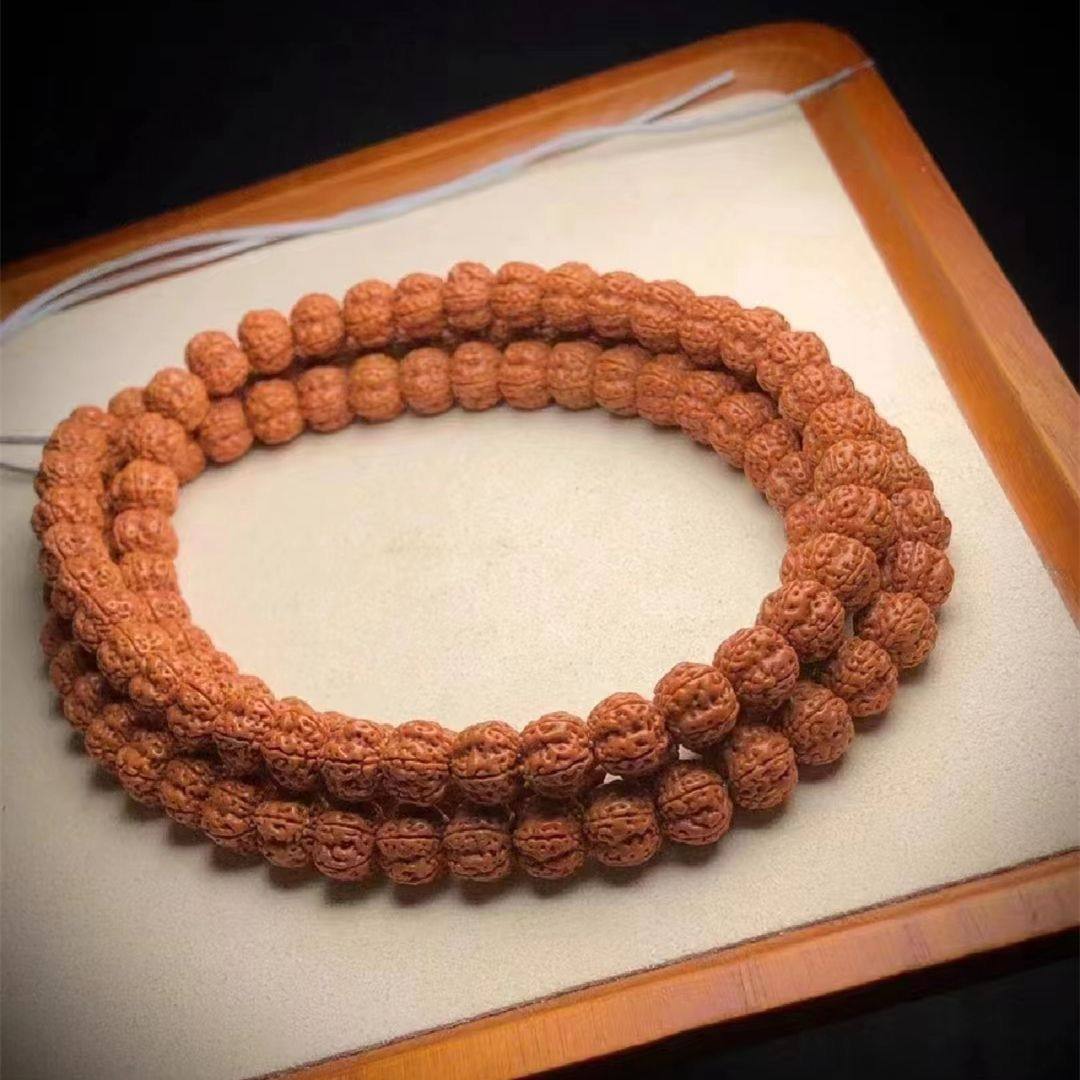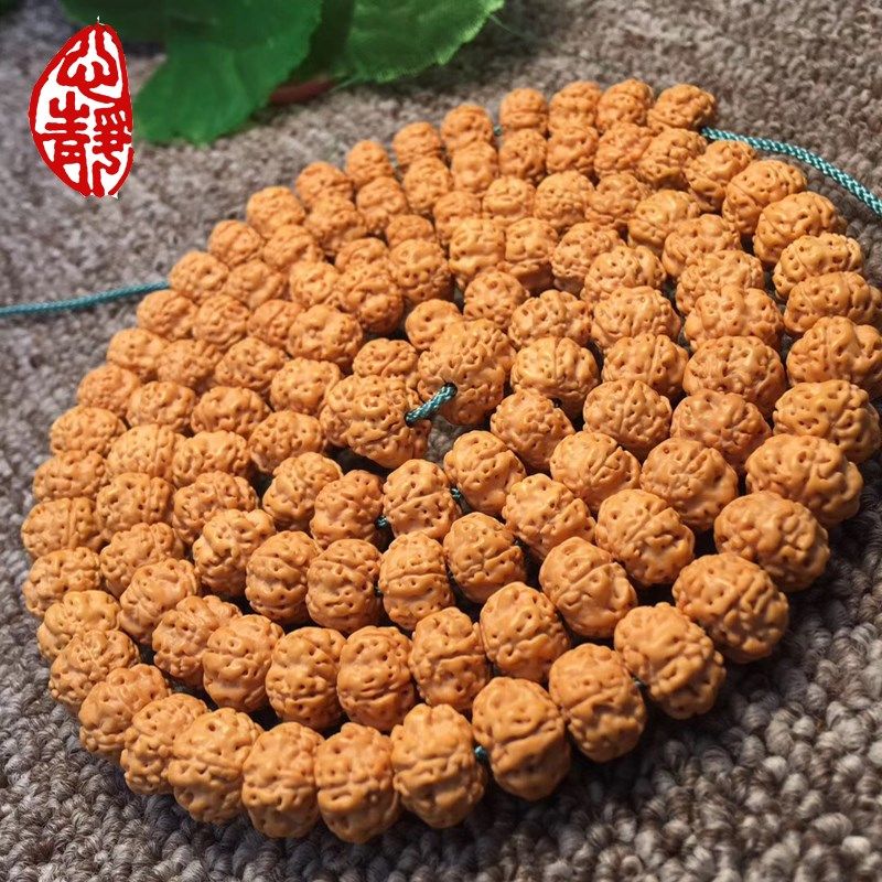 保真尼泊尔六瓣肉纹高密南瓜小金刚菩提籽盘龙纹108佛珠手串项链