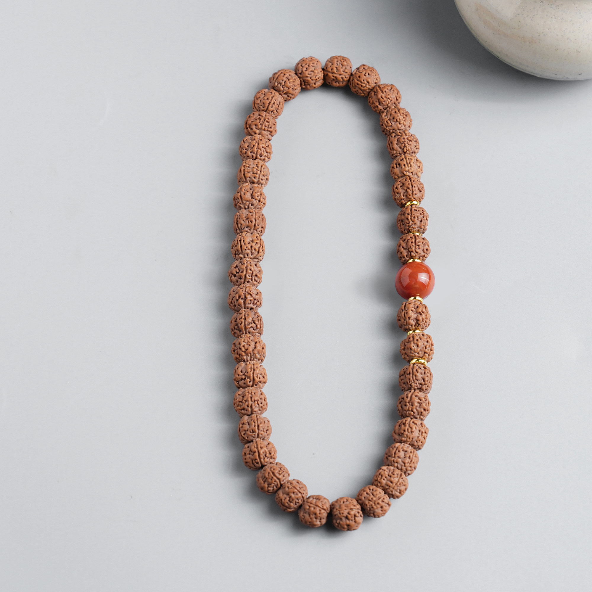 树王籽小金刚菩提五瓣盘龙纹佛念珠手持盘玩配饰南红文玩双圈手串