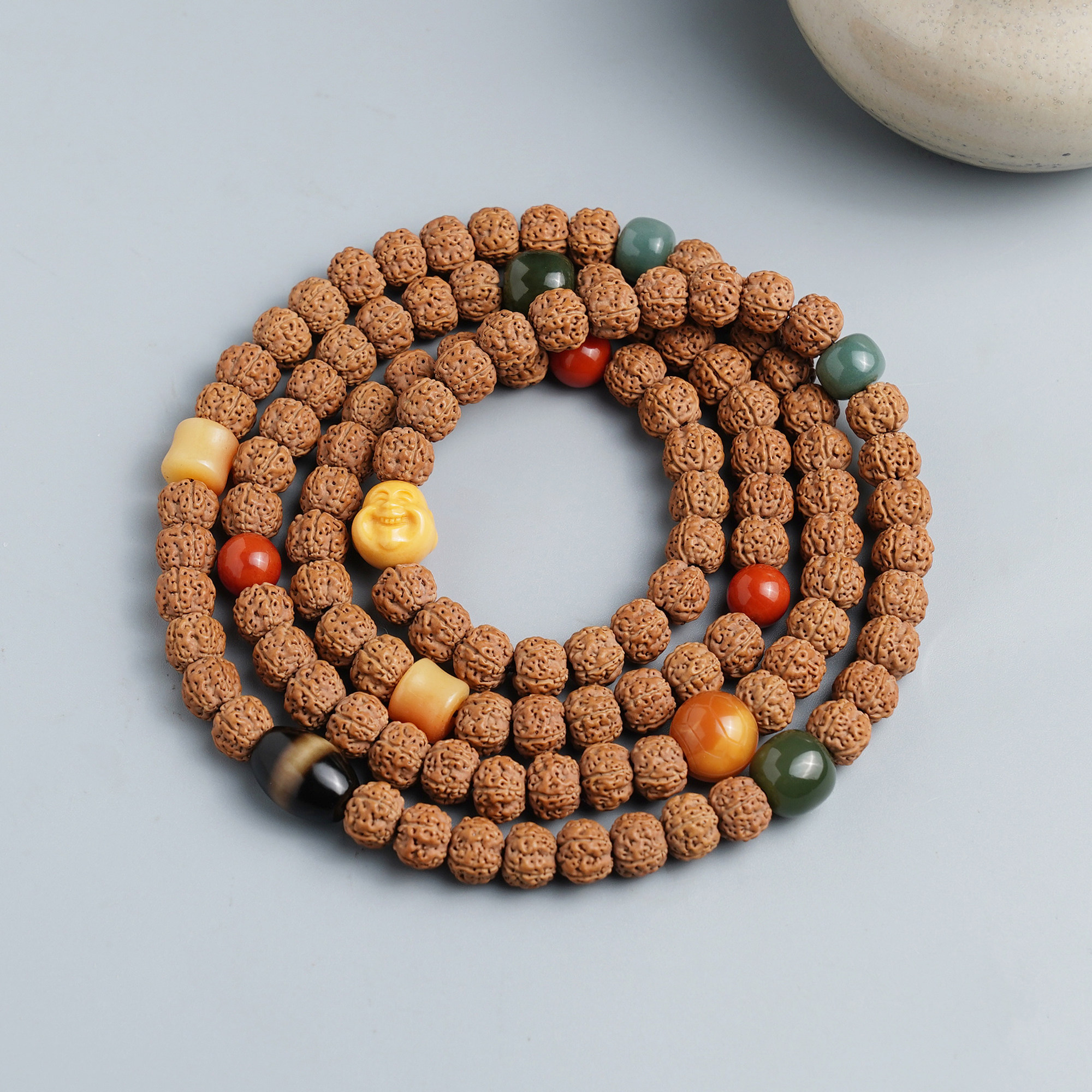 老树王小金刚菩提子手串原籽一代盘龙纹108颗佛念珠手持蜜蜡文玩