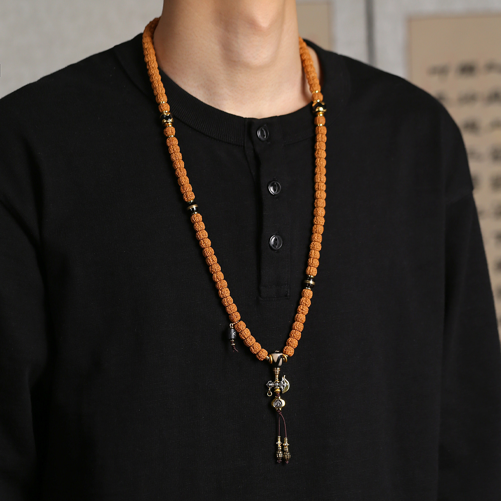 盘龙纹小金刚菩提子手串藏式直切108颗念珠手持文玩天珠配饰项链