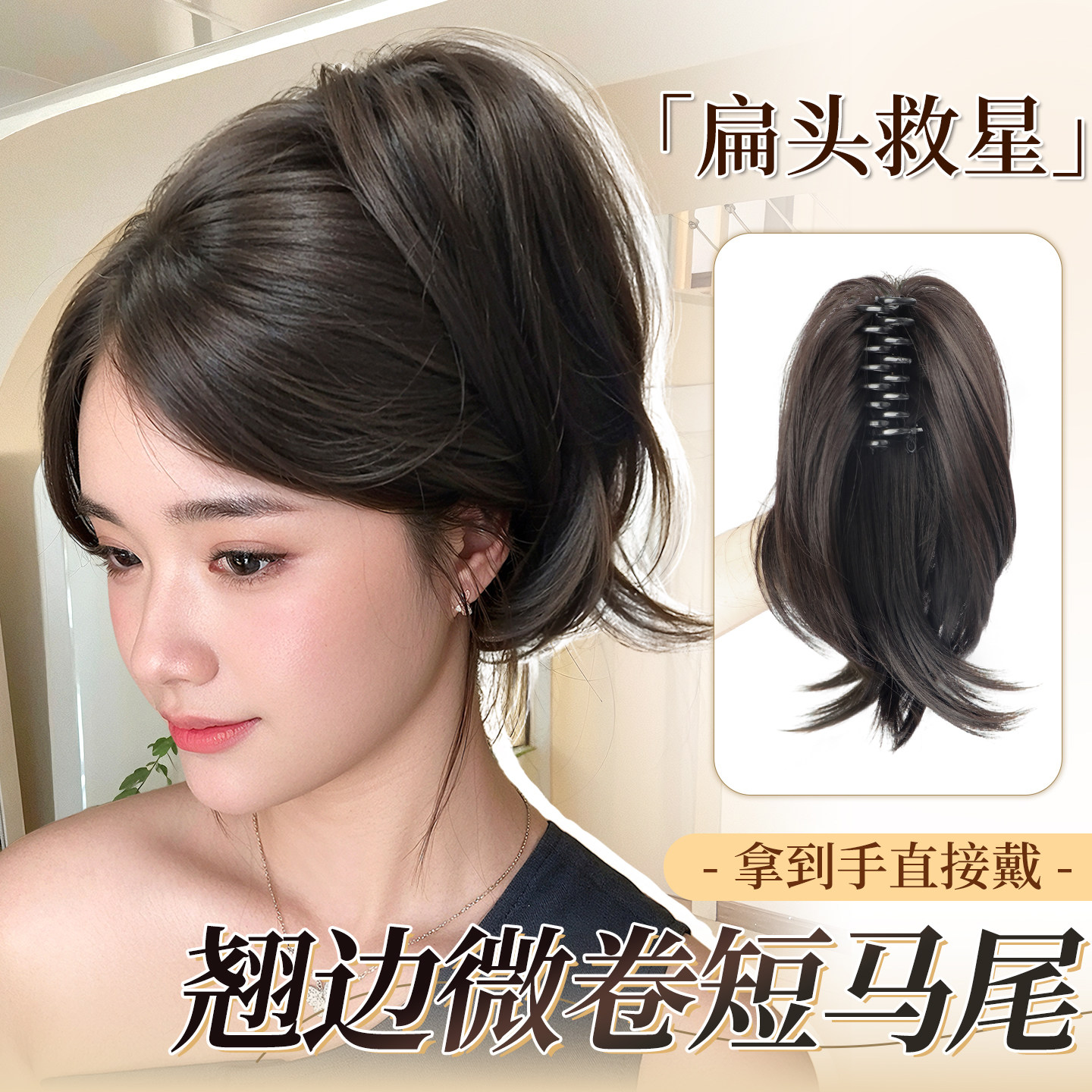 超短马尾假发女 抓夹式短款直发假马尾 网红微卷自然辫子仿真假发