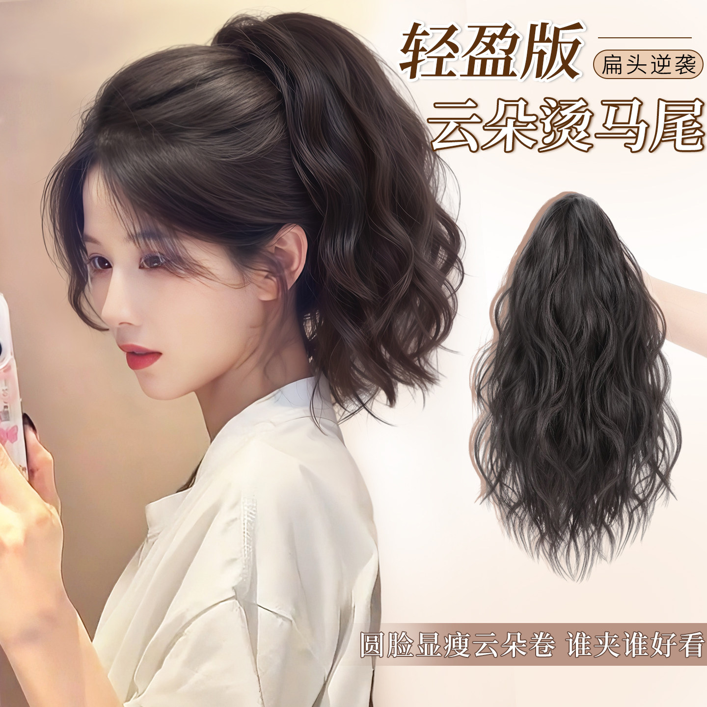 马尾假发女抓夹式短款轻云朵烫高马尾仿真发蓬松长发辫子马尾假发