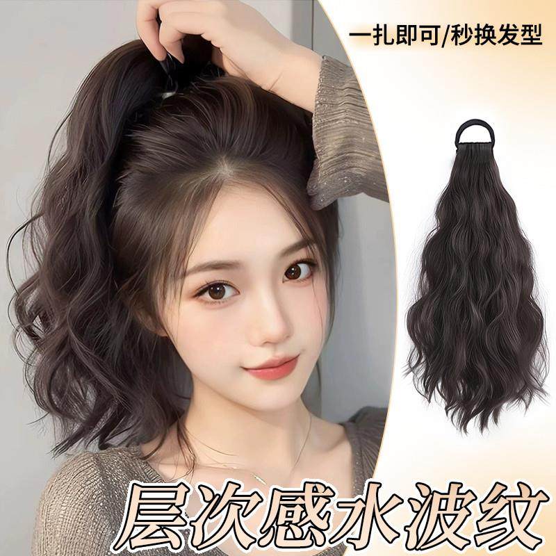 真发绑带式卷发假发马尾短款水波纹40自然网红高马尾假发女轻薄