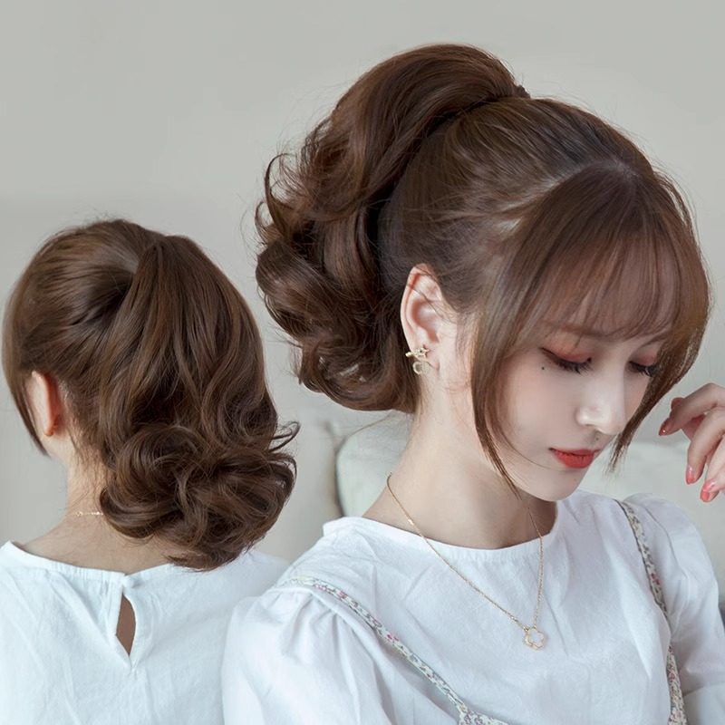 马尾假发女抓夹式蓬松高颅顶增发量短款微卷假马尾网红长辫子发饰