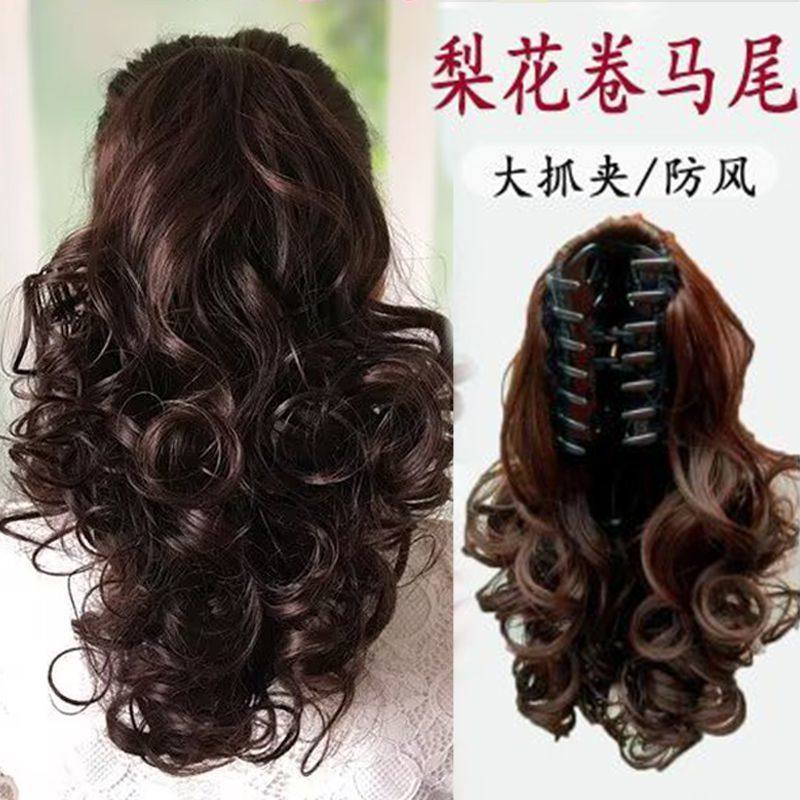 假发真发全真人发马尾辫女夏抓夹大波浪中长短款假短马尾梨花卷发