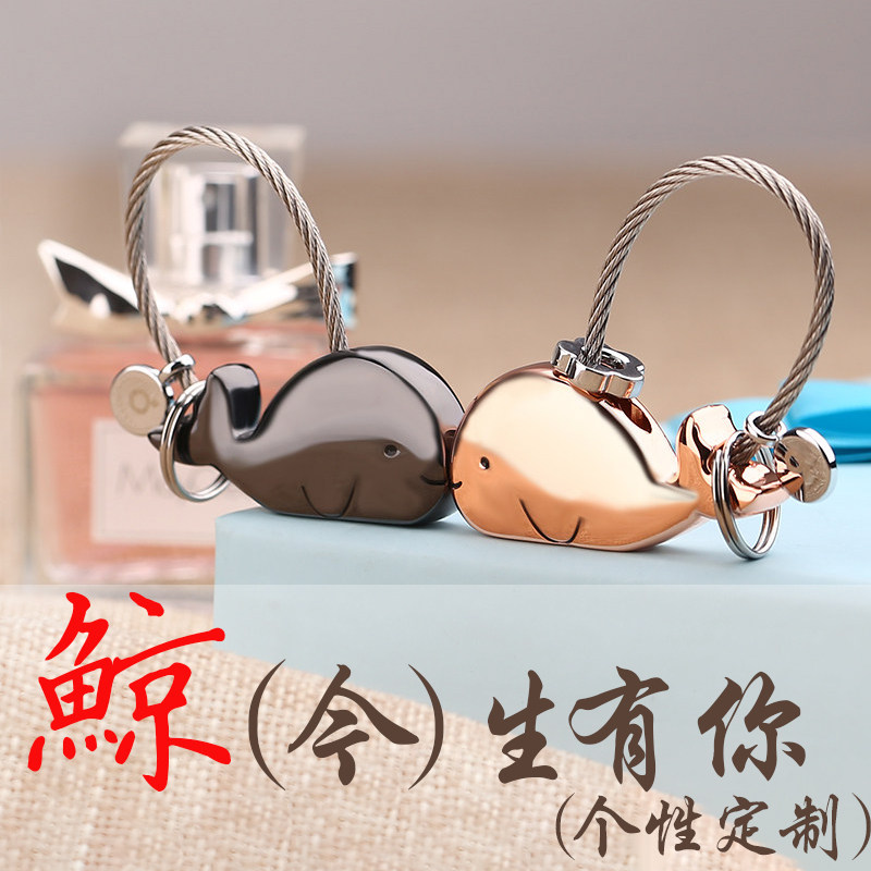 情侣鱼锁匙扣女小鲸鱼钥匙链一对感应可爱钥匙圈创意简约挂件礼物