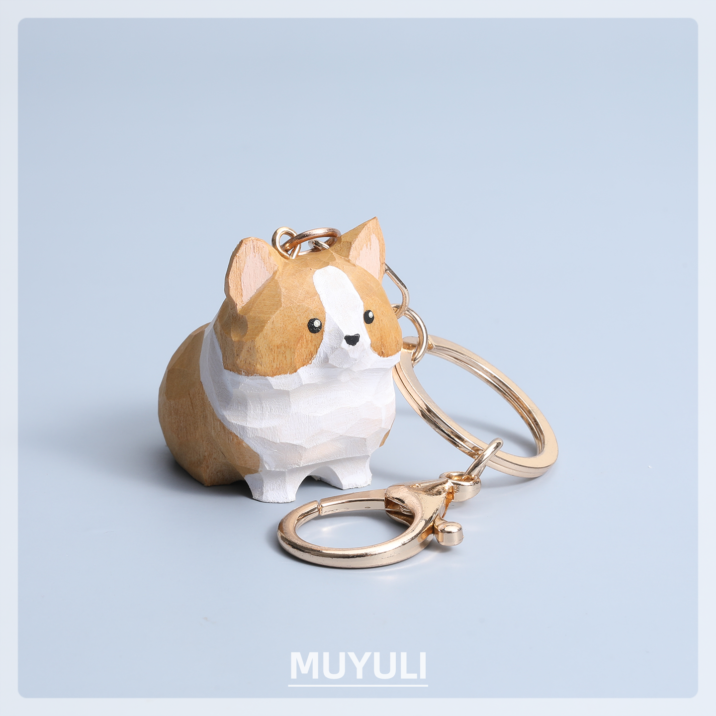 木雕柯基钥匙扣挂饰可爱狗狗包包挂件情侣一对钥匙链闺蜜创意礼物
