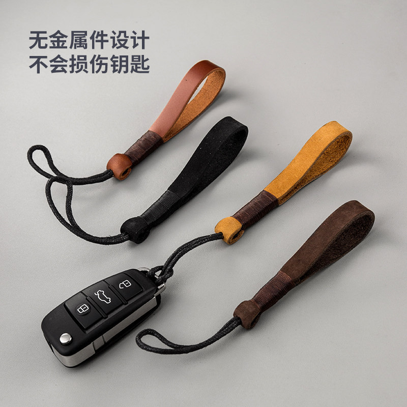 简约牛皮手绳钥匙扣挂件创意个性汽车链男女情侣一对简约锁匙圈环