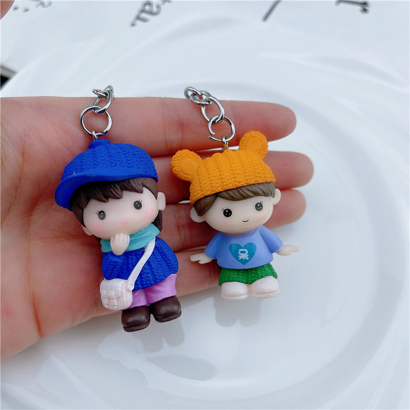 个性卡通立体情侣一对娃娃钥匙扣男女精致钥匙圈汽车背包挂件礼物