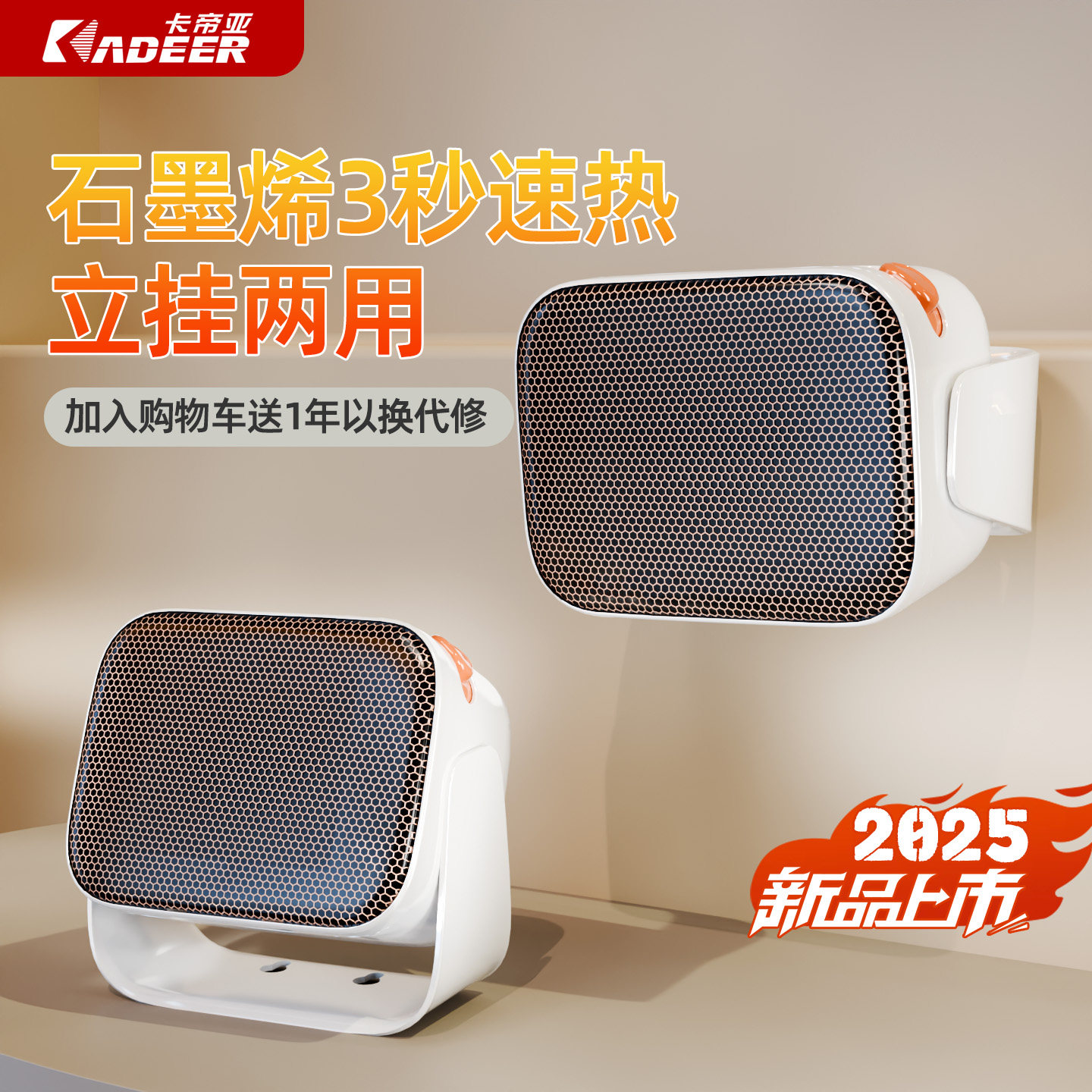 卡帝亚暖风机桌面暖风机办公室小型取暖器2025新款石墨烯电暖气