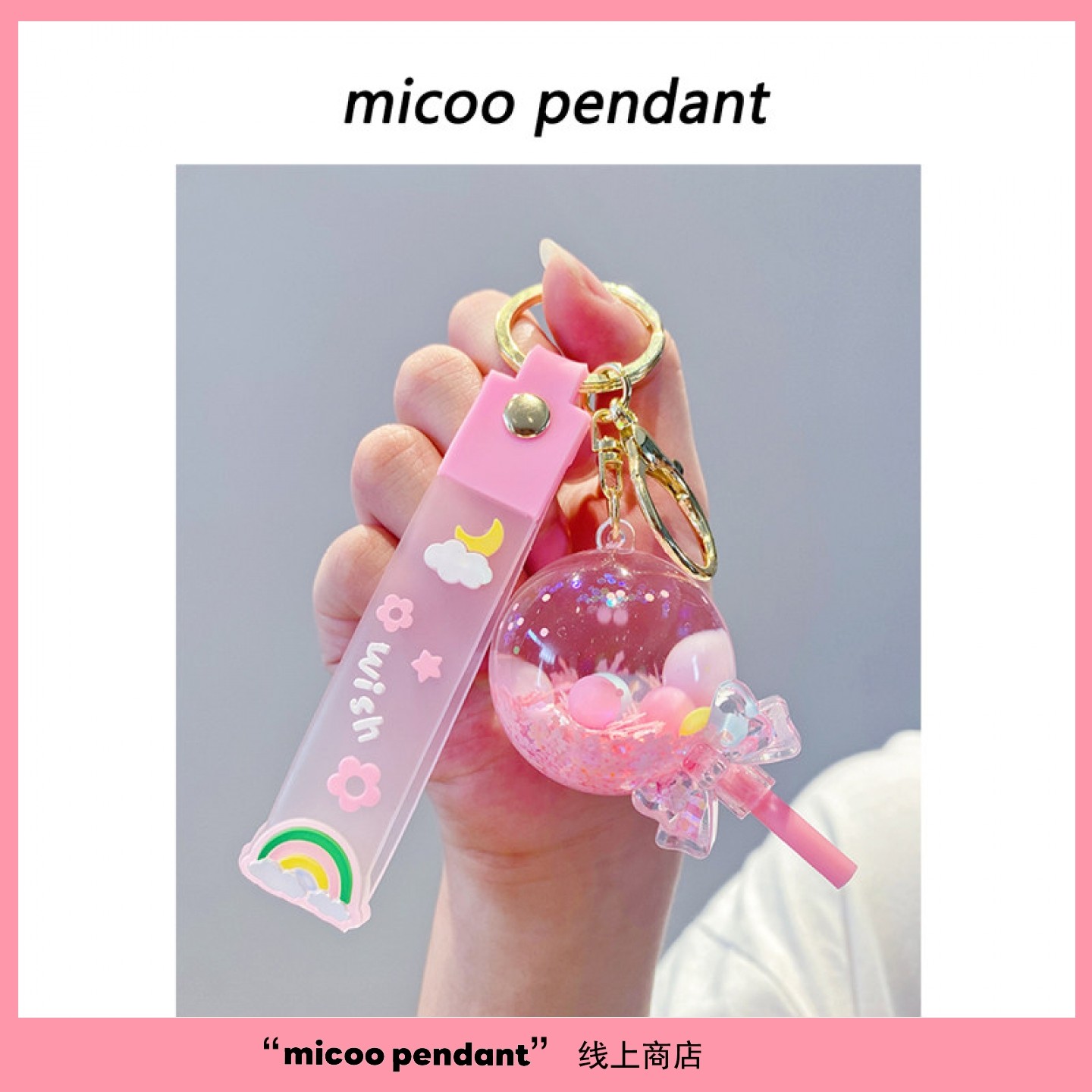 流沙漂浮棒棒糖入油钥匙扣少女心精致挂件可爱儿童书包挂饰小礼物