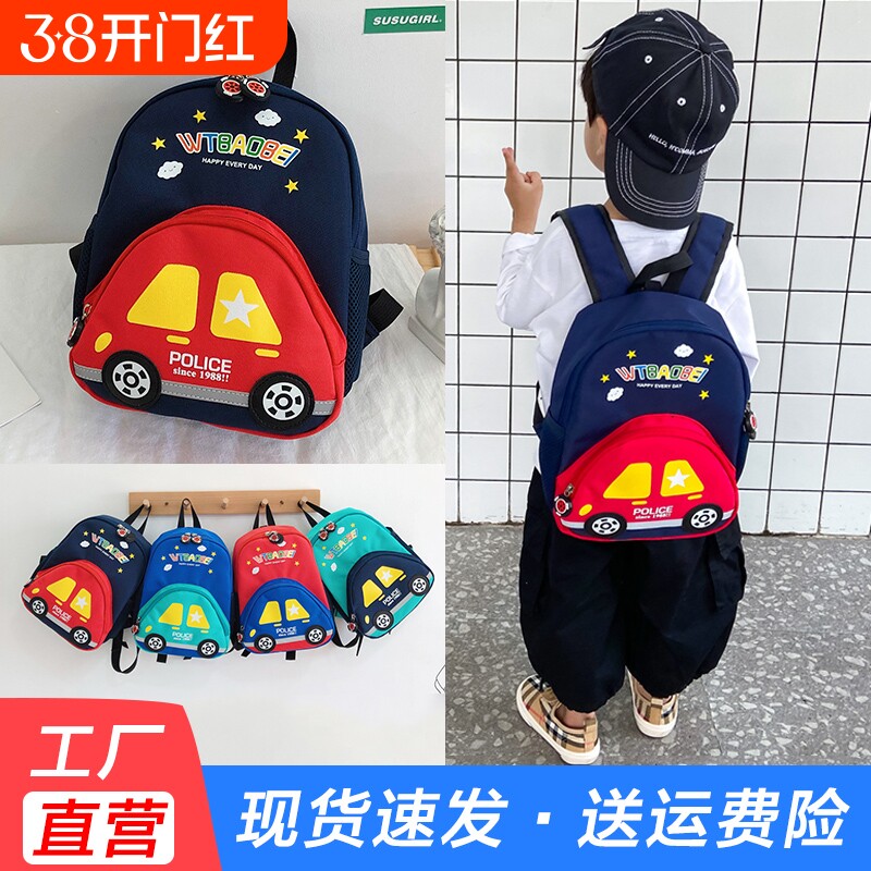 可爱儿童书包幼儿园中小班小汽车男童1至6岁宝宝背包双肩包学前班