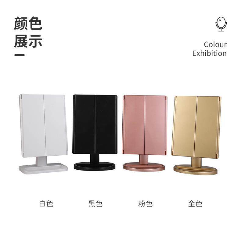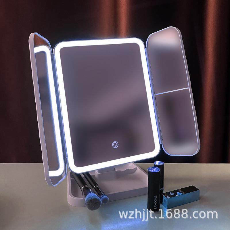 2022新款led化妆镜台灯三面旋转带收纳盒触摸感应180度折叠放大镜