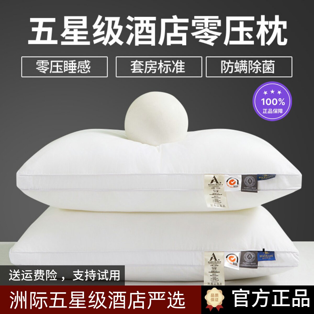 洲际五星级酒店专用枕头枕芯全棉抗菌护颈助睡眠宿舍单人家用一对