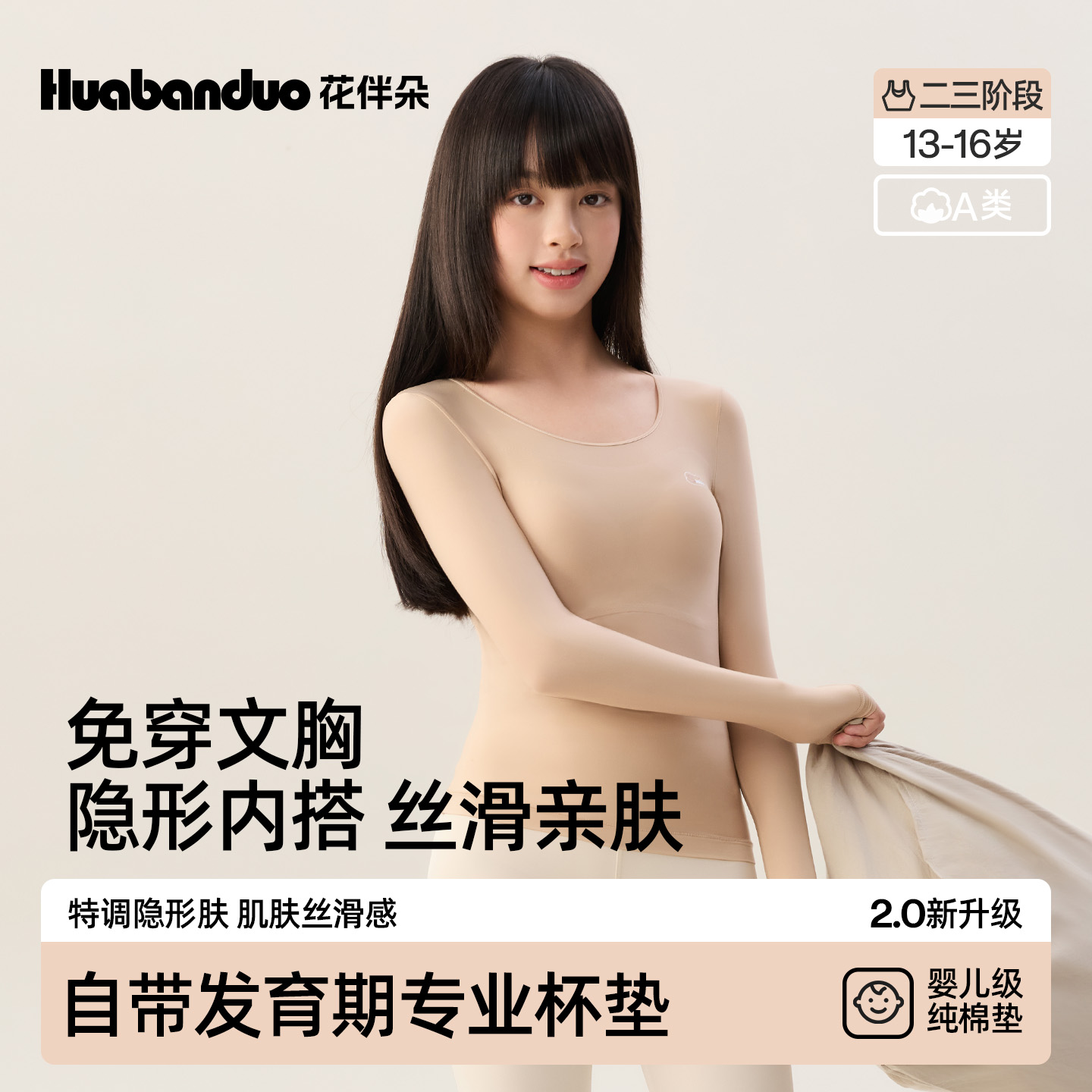 花伴朵女大童秋衣秋裤青少年女学生保暖内衣发育肌底衣二阶段带杯