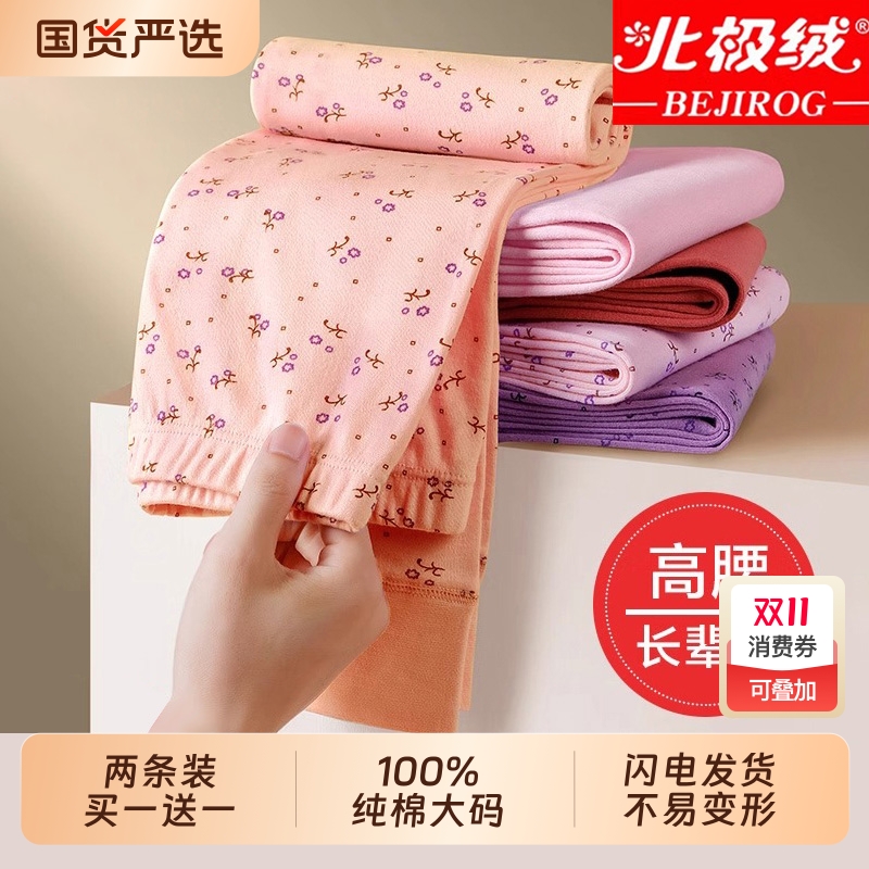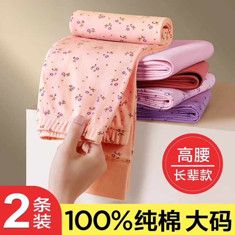 女士纯棉秋裤中老年人妈妈打底裤大码全棉毛裤宽松保暖高腰花衬裤