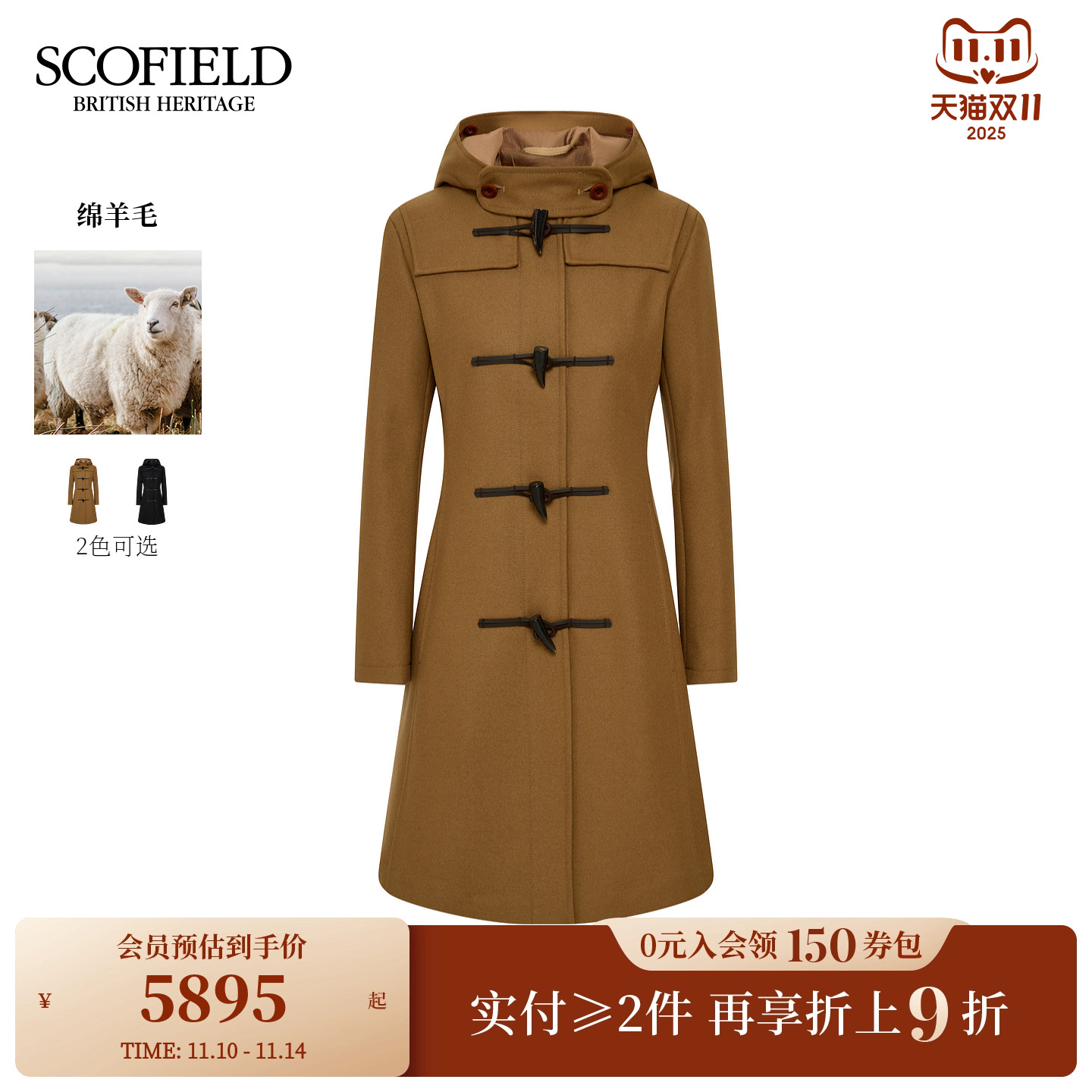 【含羊毛】Scofield女装英伦学院风连帽牛角扣大衣2025冬季新品