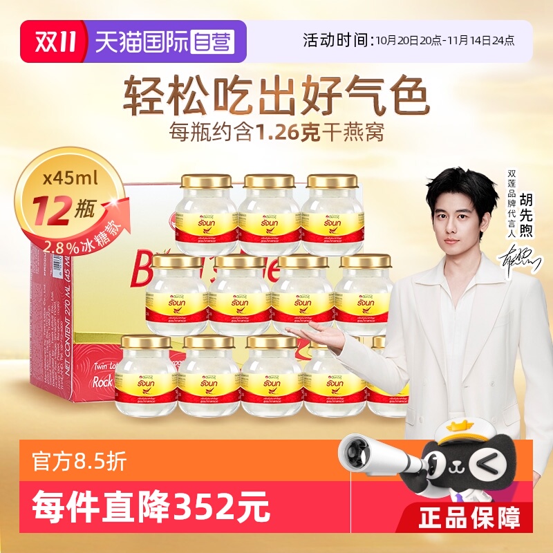 【自营】泰国正品双莲冰糖型即食燕窝孕妇滋补45ml*6瓶补品送礼
