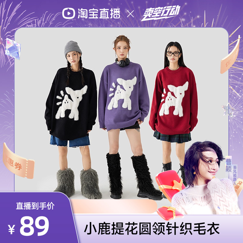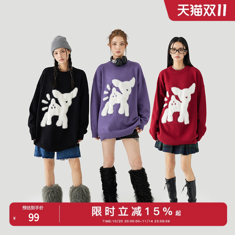【明星同款】MPUX联名小鹿仿水貂毛毛衣男女款冬季宽松情侣装冬装