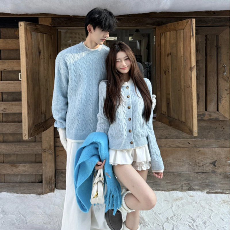 disoo情侣装冬装2025新款秋冬季韩版针织开衫套外套装高级感毛衣